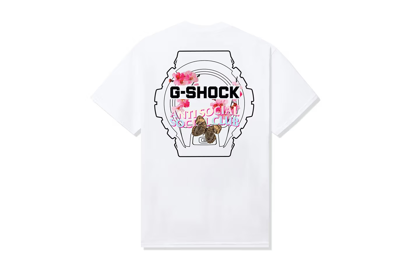 Главный элемент релиза — часы ASSC x G-SHOCK с прозрачным корпусом и ремешком, через которые видны механизм и запястье. Циферблат украшен эксклюзивной графикой с цветами и бабочками, смягчающей индустриальный характер модели. При включении подсветки цифровой дисплей выводит фразу GET WEIRD, отсылая к фирменному настроению ASSC. При этом часы сохраняют все ключевые характеристики G-SHOCK: ударопрочность, водозащиту и устойчивость к внешним воздействиям.