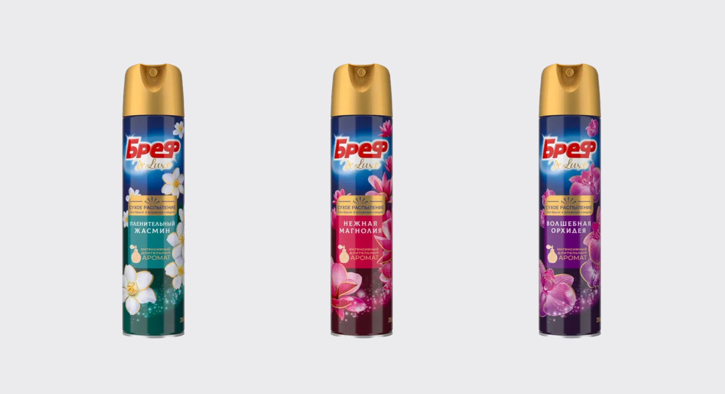 Среди новинок представлены две линейки: премиальные освежители воздуха Бреф Deluxe с утонченными роскошными ароматами и сменные блоки для автоматических устройств ароматизации Бреф Ароматы Спа.