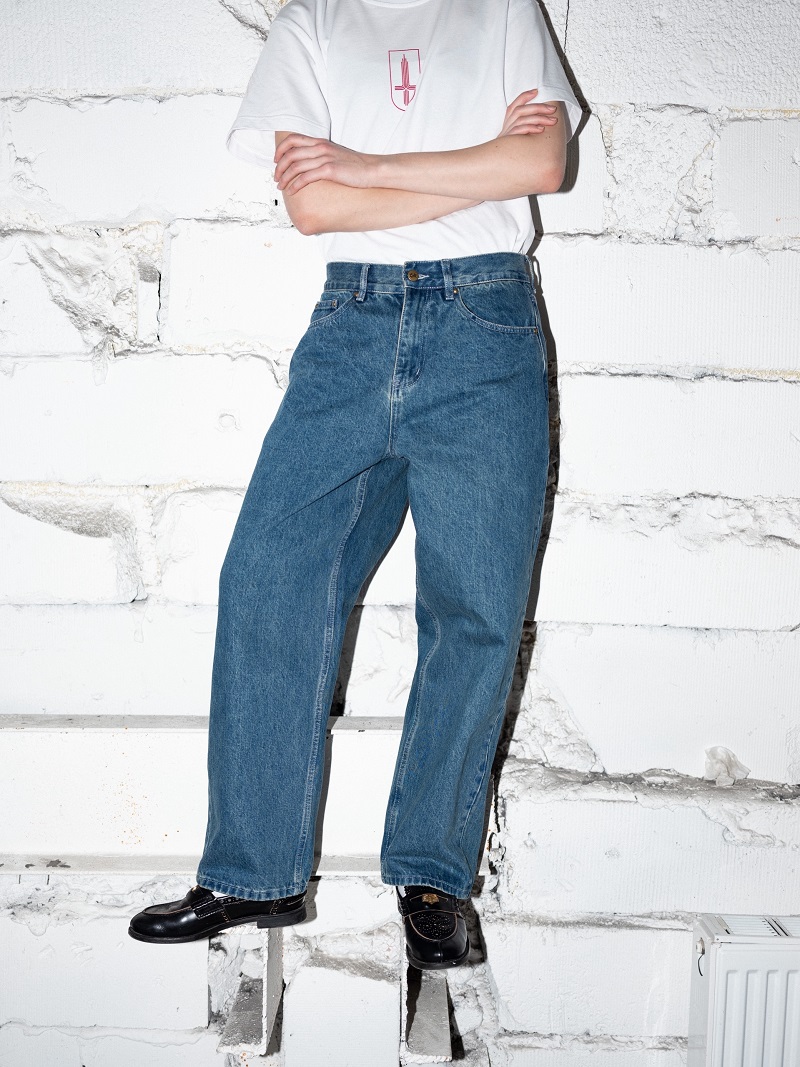 Линейка джинсов “МЕЧ” изготовлены из прочного 13-унциевого денима, который обладает уникальным “антикварным” оттенком синего и серого. Они имеют стильный и минималистичный дизайн, высококачественную фурнитуру и предлагаются в двух универсальных силуэтах с пятью карманами.
