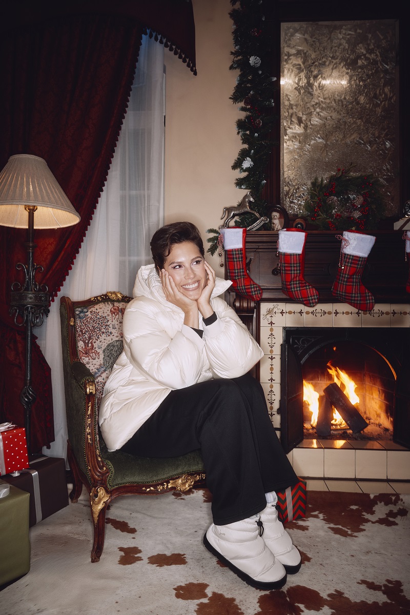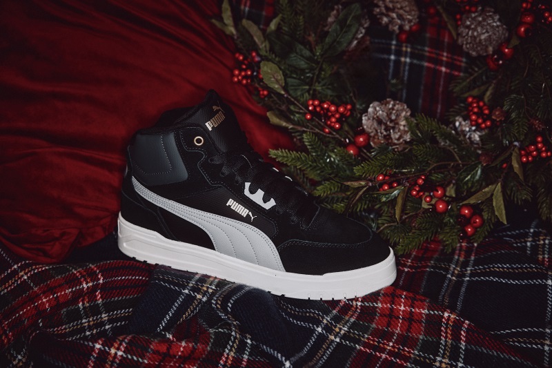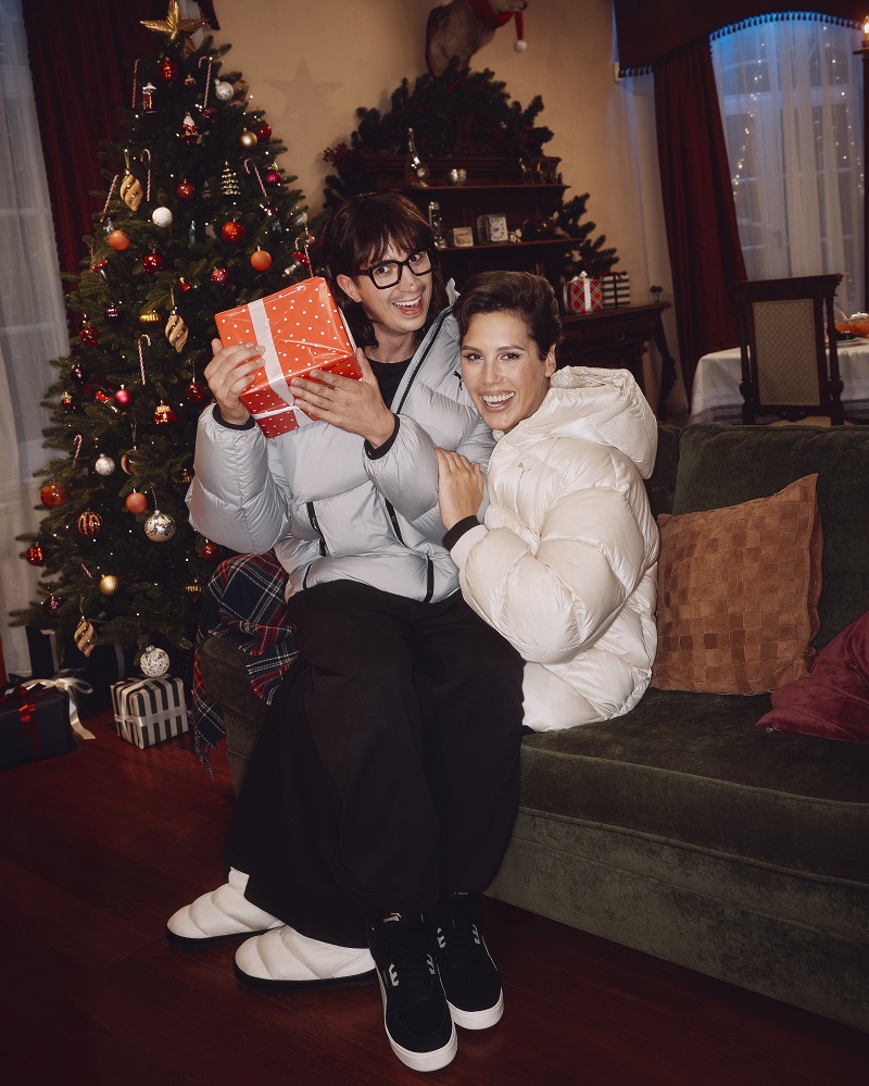 На героях представлена зимняя коллекция PUMA: куртки из 100% пуха, спортивные брюки и олимпийки. Из обуви, на Ирине – PUMA Tuff Terra Hi, на Илье – утепленные кроссовки PUMA Shuffle Downtown Mid WTR.