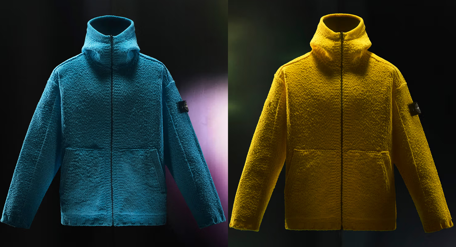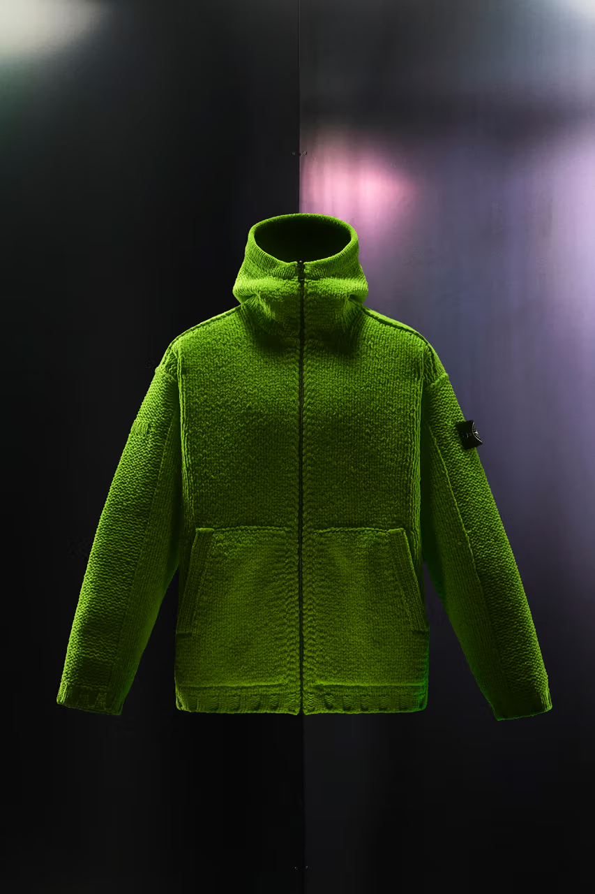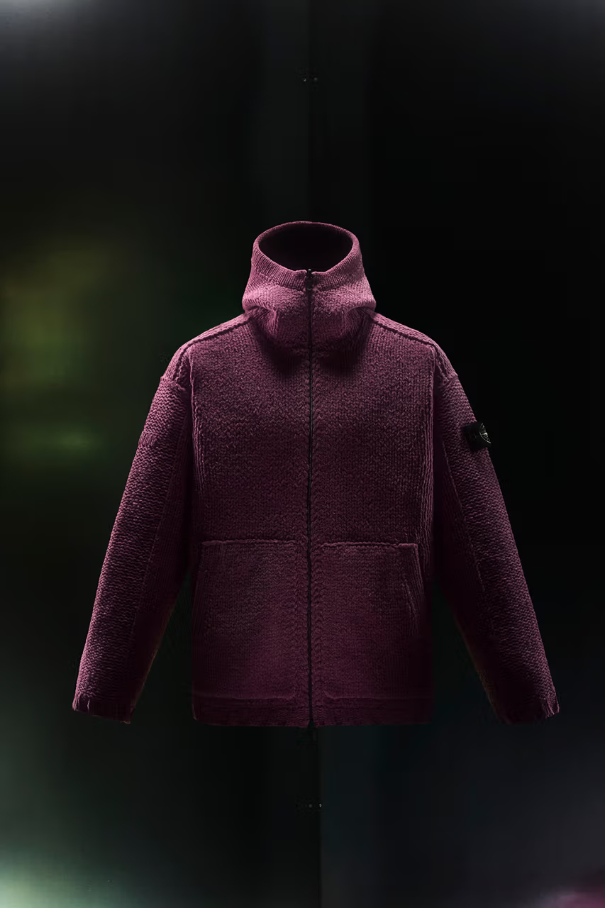 Продолжая линию исследовательских экспериментов, в этом году Stone Island впервые сосредоточился на трикотаже. В основе новинки — инновационный air-blown laminated knit: метод ламинирования, при котором вязаная структура получает свойства полноценной верхней одежды. Модель выполнена в формате хлопкового худи-кардигана из шенилла и рассчитана на двустороннюю носку. За счёт этого каждая куртка не только уникальна по цвету, но и вариативна по стилю.