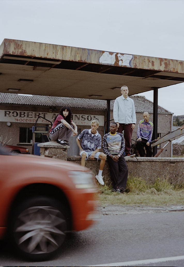 Капсульная коллекция — это точечный набор: технологичный трикотаж, футбольные джерси, графические лонгсливы, тренировочные куртки и аксессуары. Крои отсылают к разминочной экипировке и «бутлег»-стилистике клубов, а детали — к моде трибун начала 2000-х. Палитра — микс фиолетово-синих, неоновых пурпурных, ледяных серых и кобальтовых оттенков, дополненный спецсозданным тартаном в честь 150-летия Lyle & Scott.