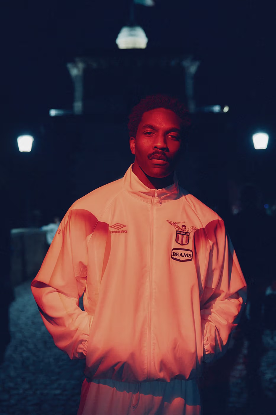 В коллекцию вошли три игровых футболки, три трексуита и кофта с четверть-молнией. Все вещи выполнены с отражающей вышивкой 3M и аккуратными деталями Umbro, подчеркивающими уважение к игре и ее сообществу. Релиз ограничен и пройдет только в Японии — с 7 по 9 ноября в поп-апе BEAMS Tokyo.