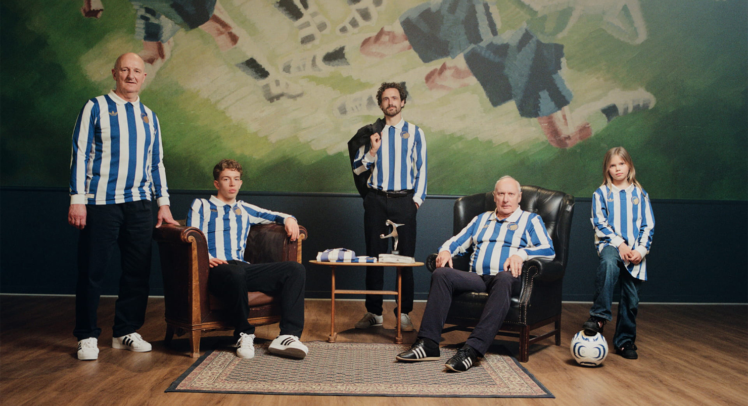 Юбилейная форма от adidas выдержана в классическом ретро-ключе. В основе — культовые сине-белые полосы KB, которые сегодня определяют цвета «Копенгагена». Традиционный воротник добавляет элегантности и завершает аккуратный силуэт. На груди соседствуют клубный герб и трилистник adidas — знаки качества, наследия и класса.