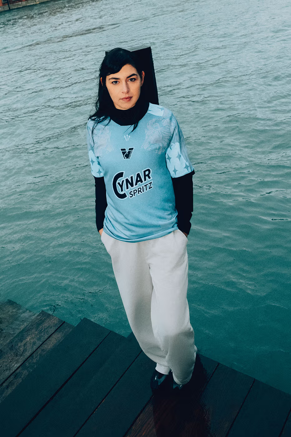 Дизайн трактует воду как язык движения и коллективной идентичности. Многослойные оттенки синего отсылают к глубине и постоянной динамике лагуны. Исторические символы, включая палитру, вдохновлённую Крылатым Львом Святого Марка, переосмыслены через современную графическую эстетику Рамберга. В результате удалось сбалансировать богатое наследие клуба и смелую глобальную визуальность, создав форму, которая одновременно является и функциональным игровым комплектом, и концептуальным объектом.